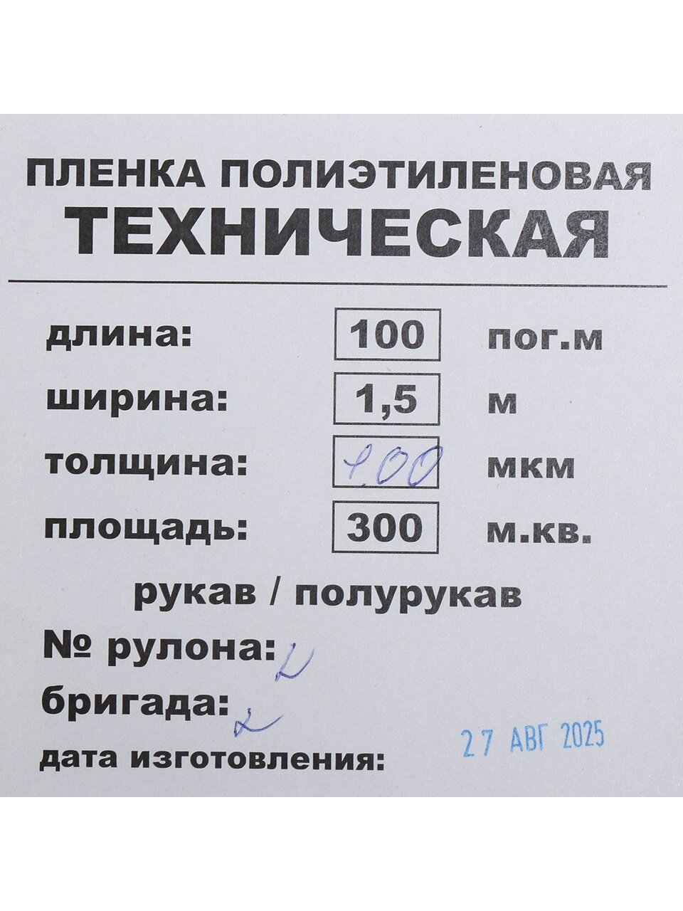 Толщина пленки 100 мкм.