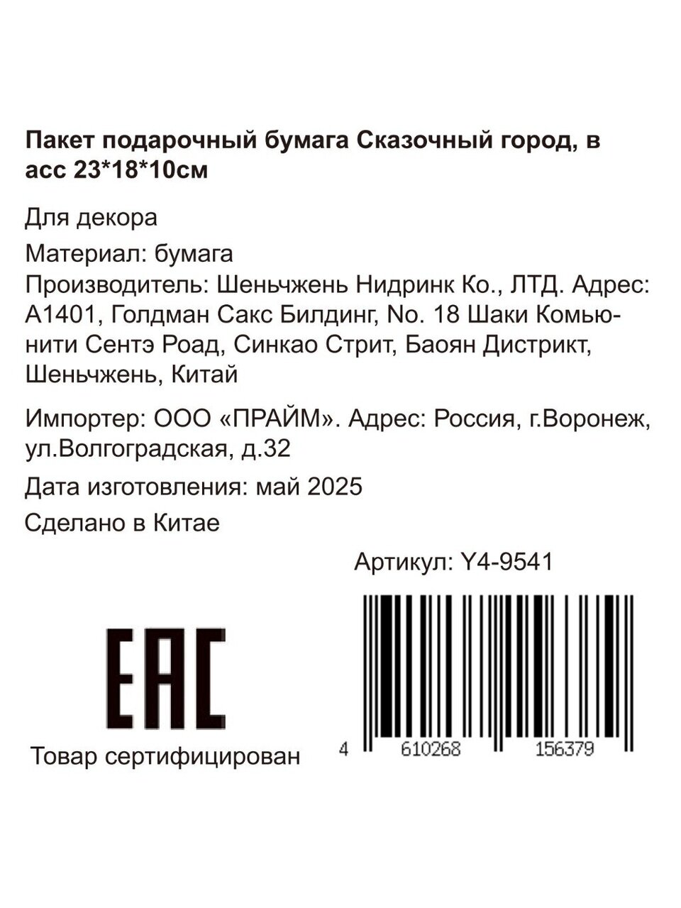 Пакет "Сказочный город" создает эффектное первое впечатление и экономит время на упаковке, делая вручение подарка особенно запоминающимся.