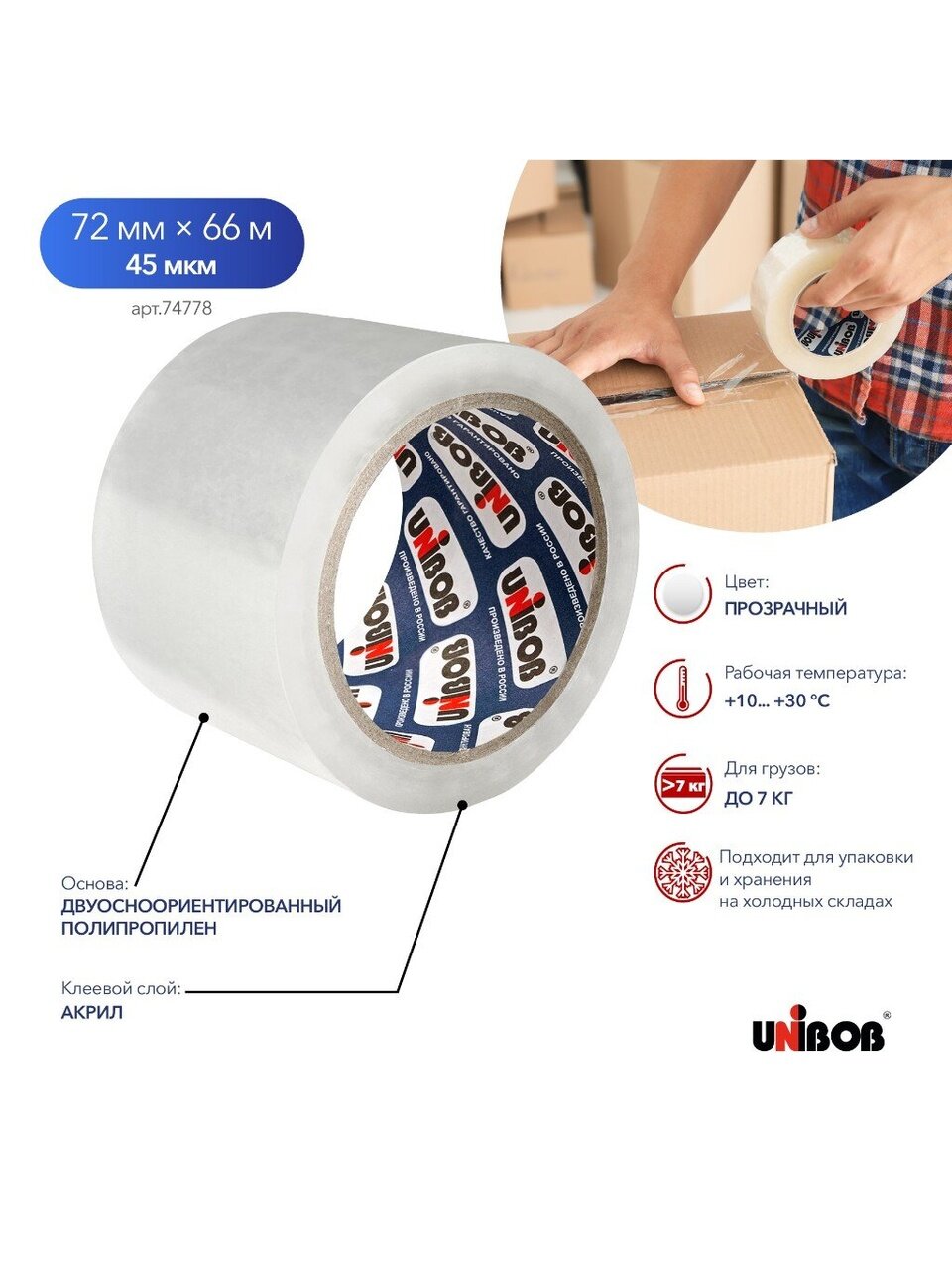 Вы можете приобрести «Клейкая лента упаковочная, 72 мм, прозрачная, основа полипропиленовая, 66 м, 45 мкм, Unibob, 600, 74778» и другие товары в нашем интернет-магазине в Обнинске по низким ценам и с бесплатным самовывозом.