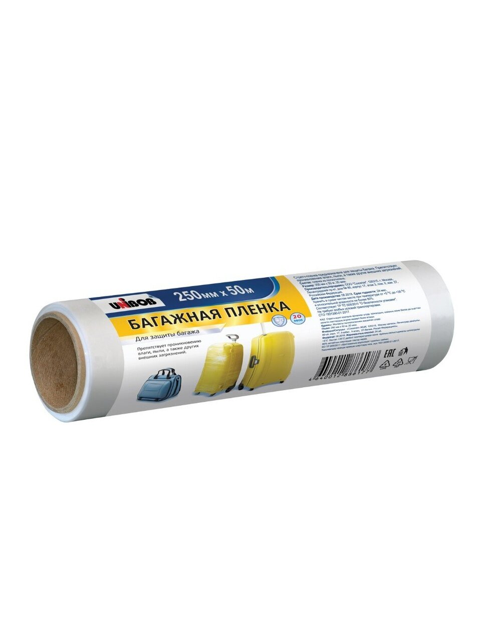 Стрейч-пленка багажная Unibob 250 мм — идеальное решение для надежной ручной упаковки багажа и защиты вещей от пыли и влаги. Прочная пленка из первичного сырья толщиной 20 мкм обеспечивает высокую эластичность и плотное прилегание. Легко использовать, удобно брать в дорогу. Экономия времени и уверенность в сохранности содержимого — выгодный выбор для путешествий и хранения.