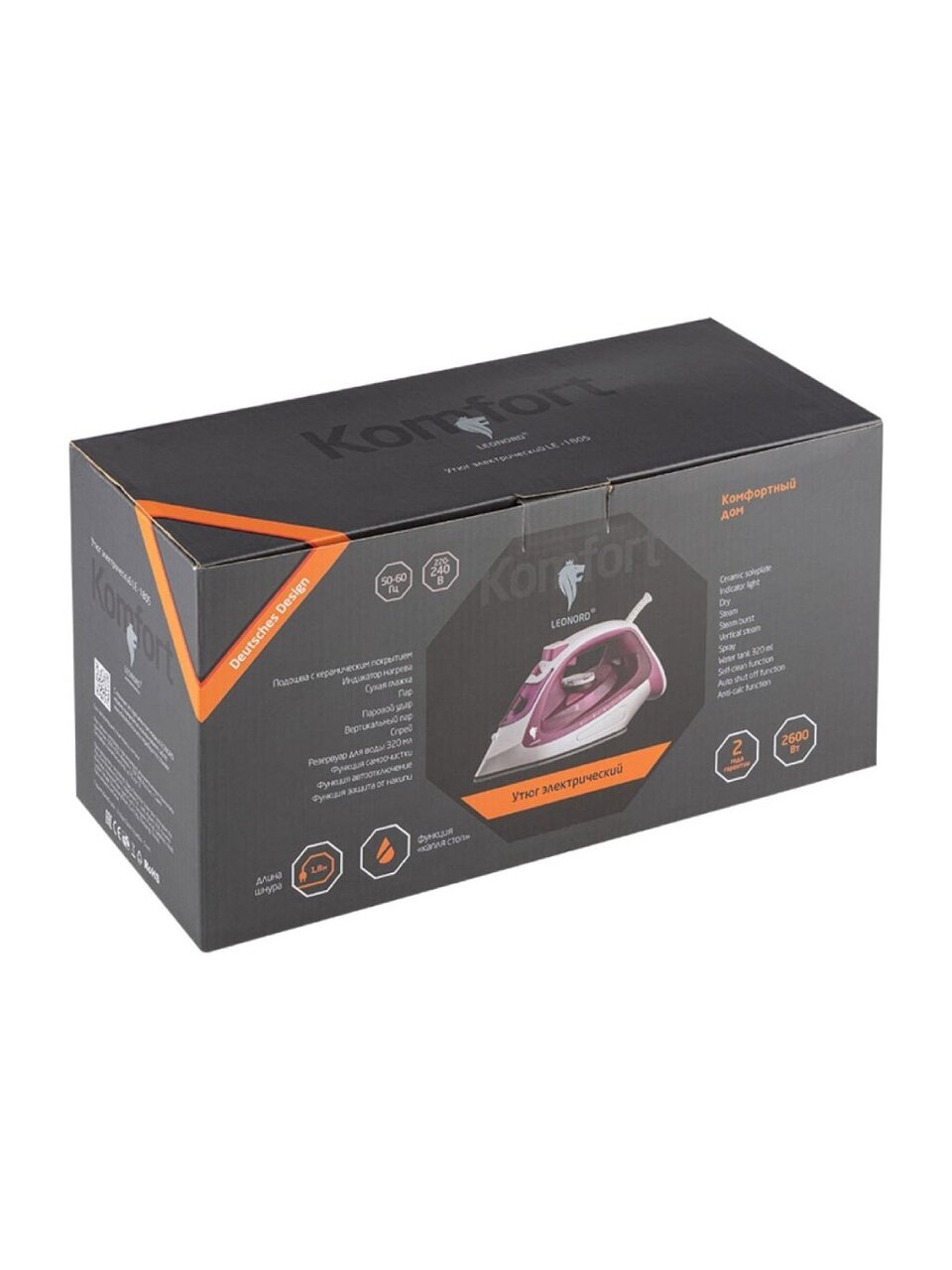 Вы можете приобрести «Утюг Leonord, LE-1805, 2600 Вт, керамика, вертикальное отпаривание, противокапельная система, система самоочистки, защита от накипи, пар, спрей, удар, 1.8 м, розовый» и другие товары в нашем интернет-магазине в Курске по низким ценам и с бесплатным самовывозом.