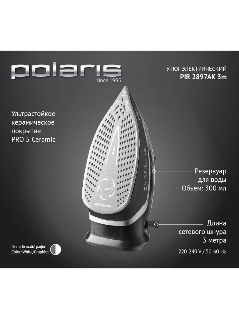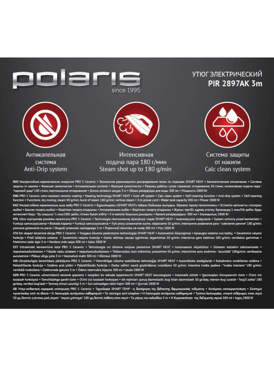 Закажите Polaris PIR 2897AK сейчас — и получите профессиональный результат глажки с первого применения. Официальная гарантия и быстрая доставка — ваш комфорт и спокойствие!