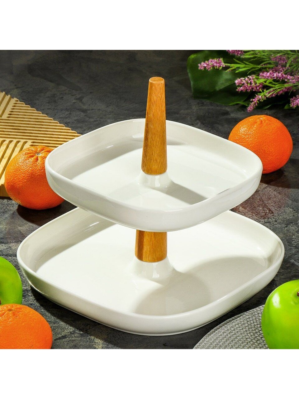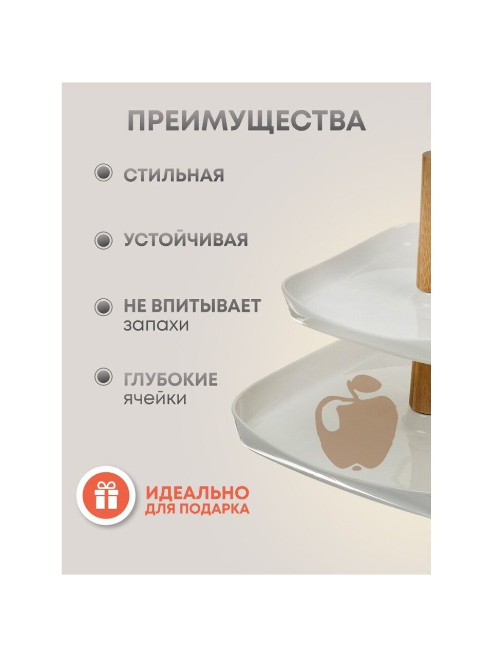 Двухъярусная ваза для фруктов выполнена из керамики в виде двух блюд на ножке. Ваза для фруктов станет идеальным украшением любой кухни или прекрасным подарком для вас и ваших близких.