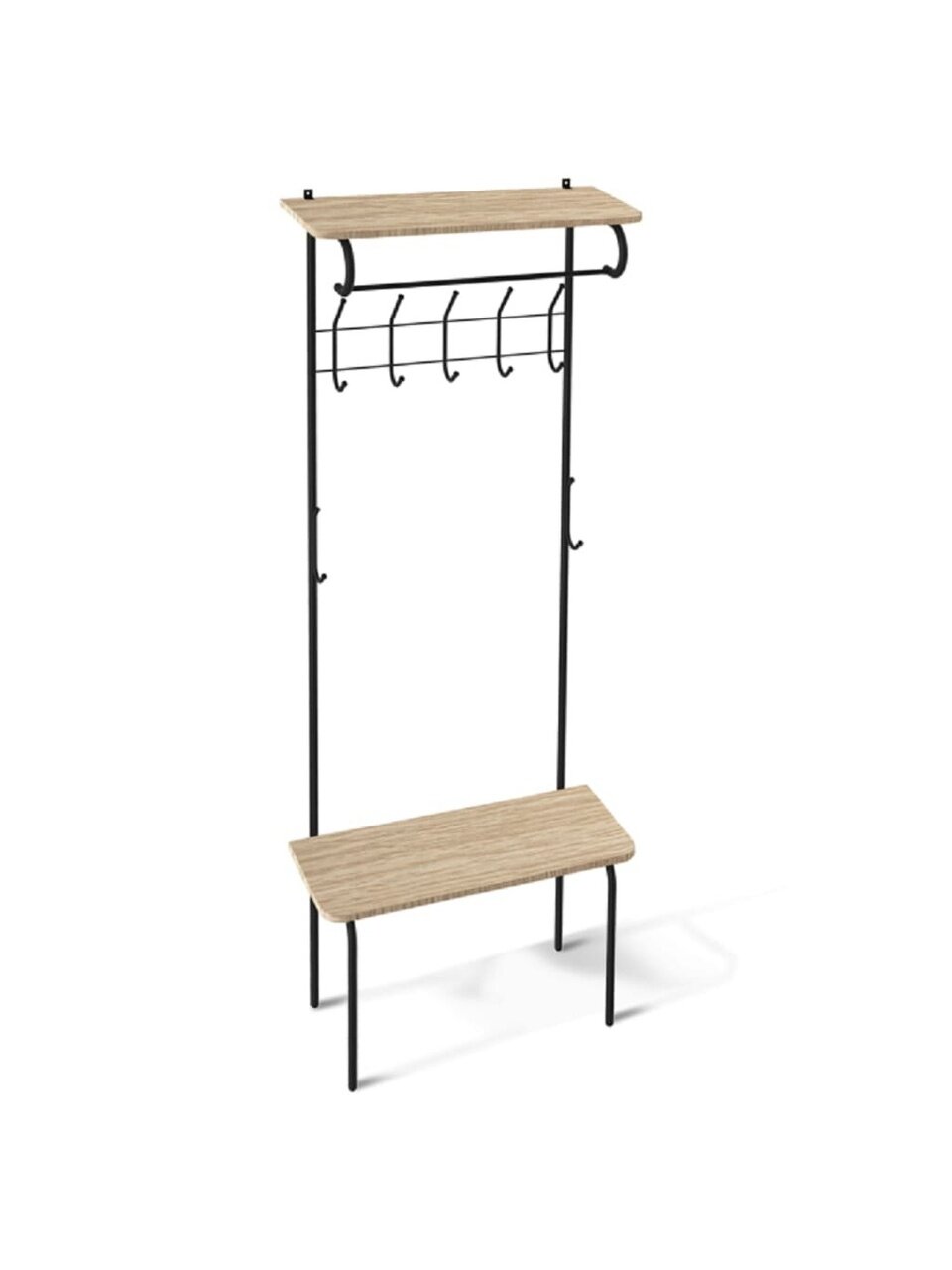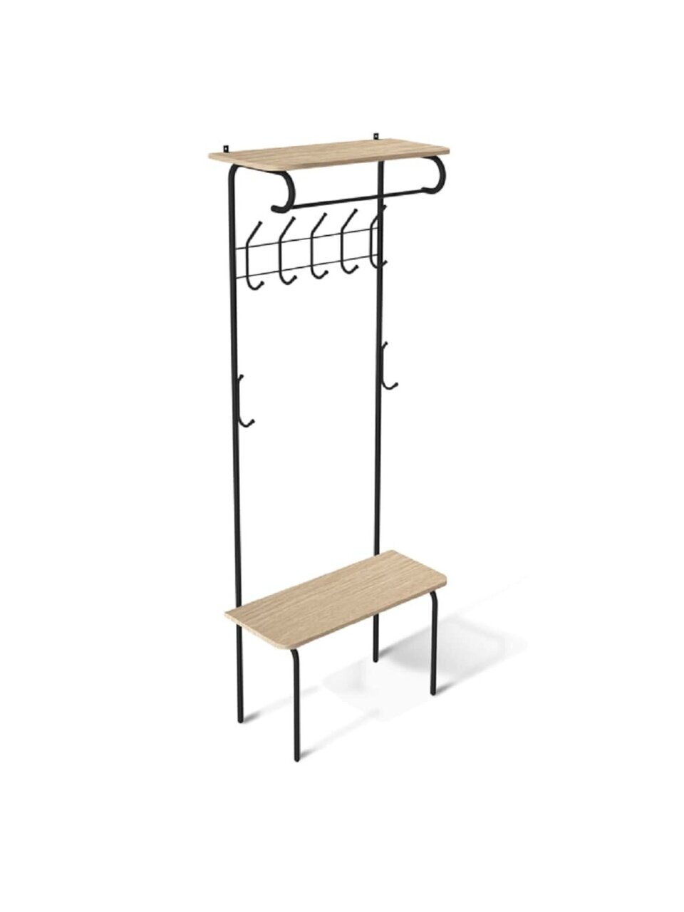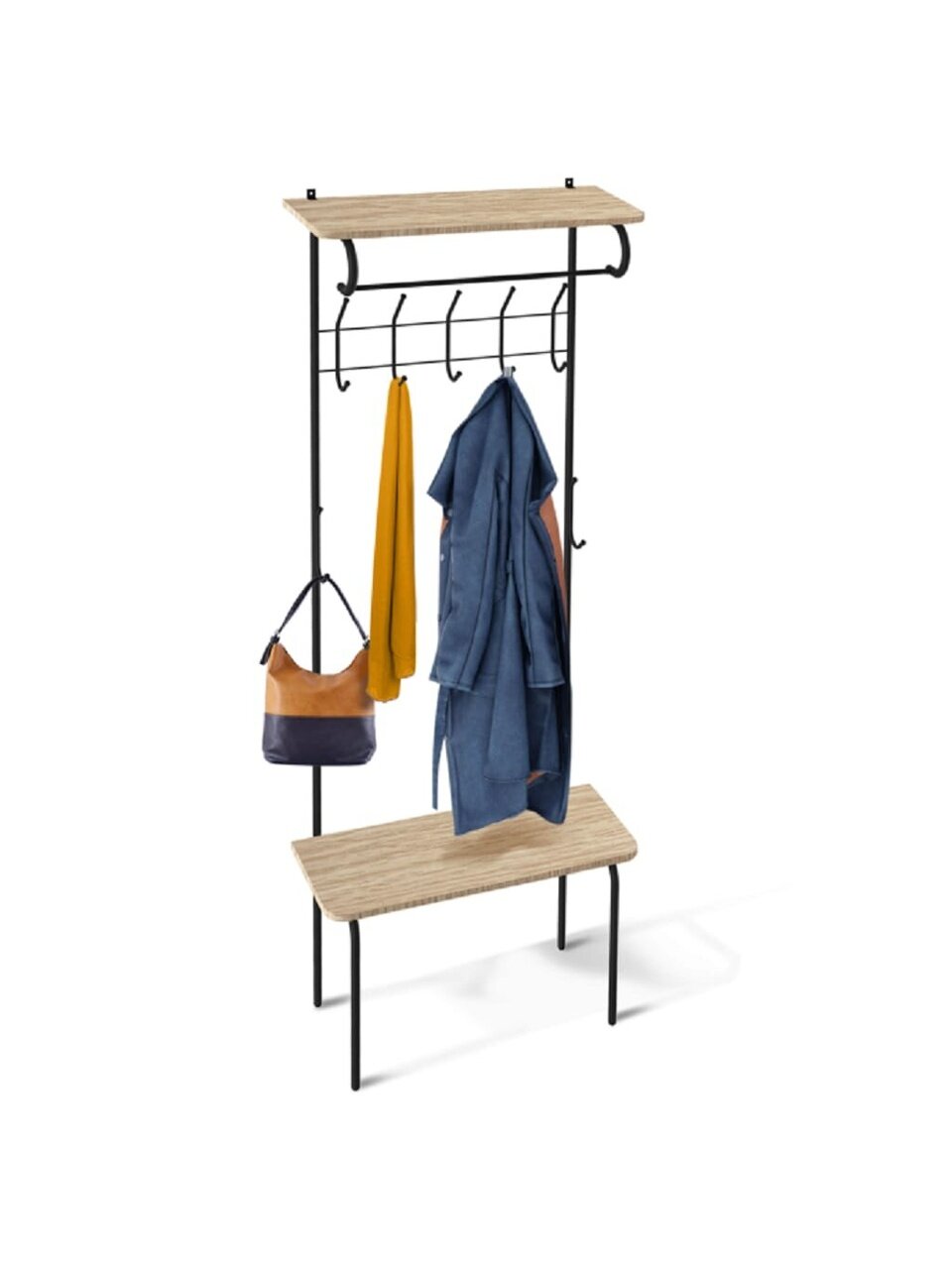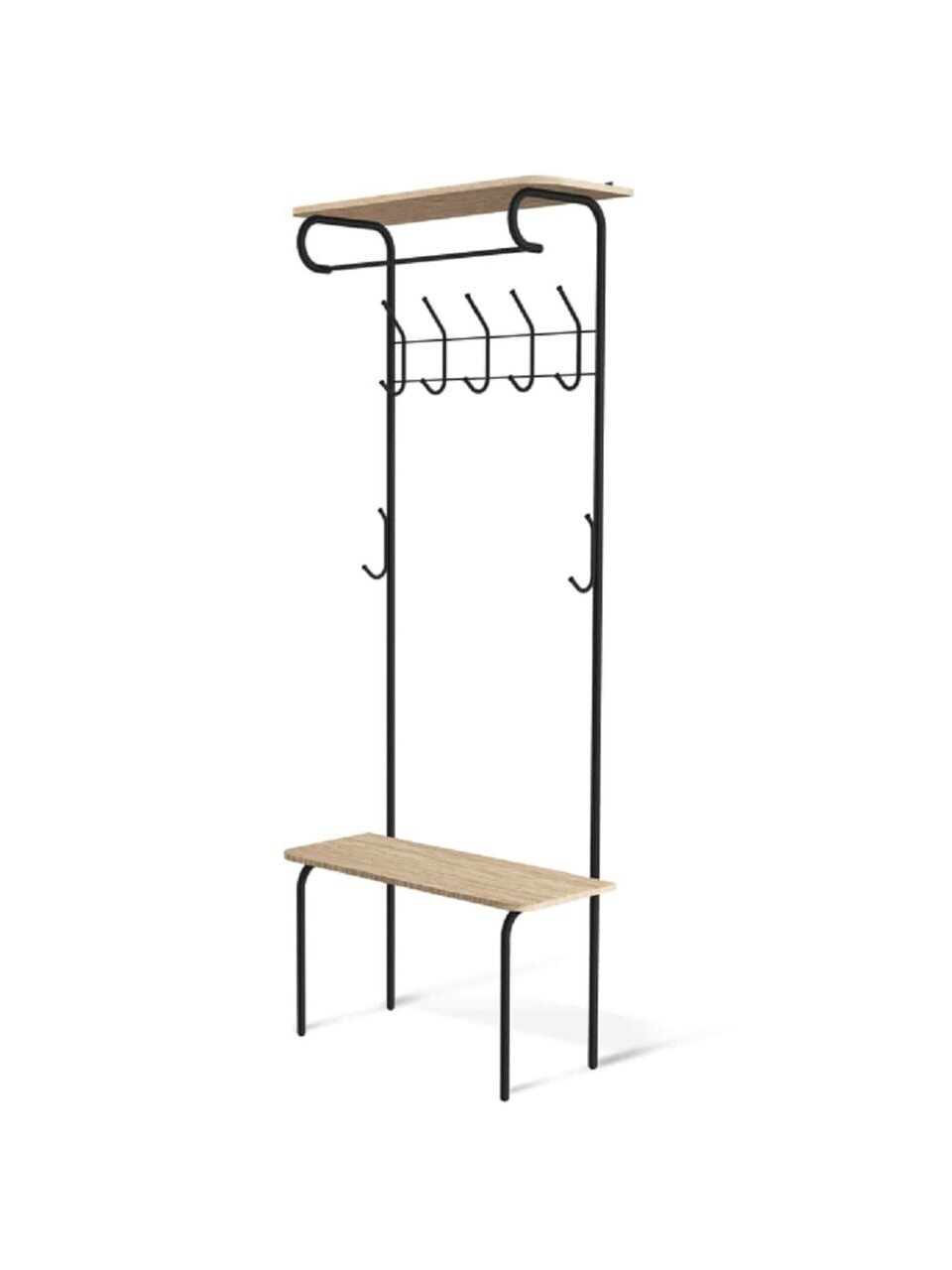 Вешалка изготовлена из прочного металла и рассчитана на повседневную нагрузку — можно одновременно размещать верхнюю одежду, шарфы, сумки на 7 крючках без риска деформаций.