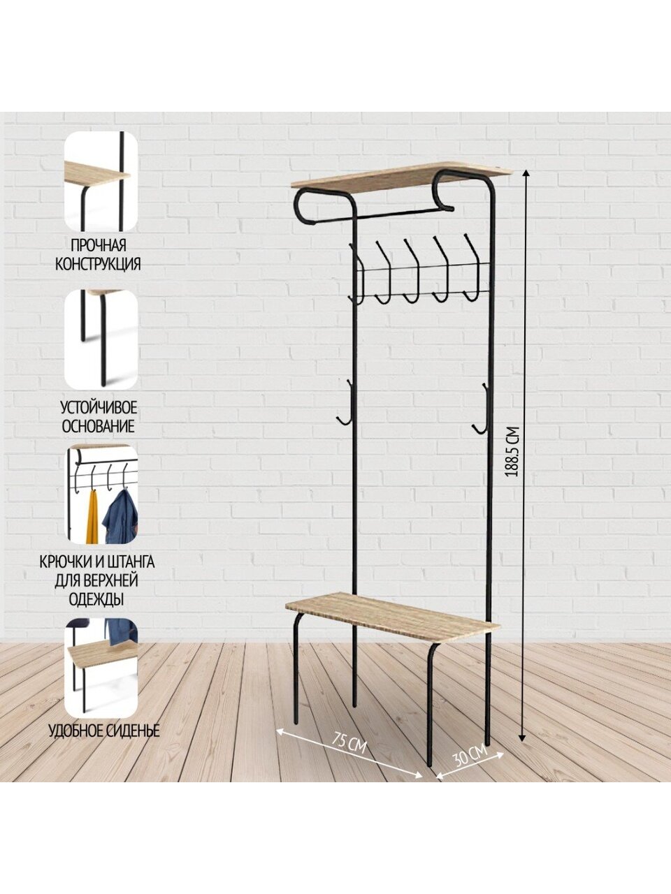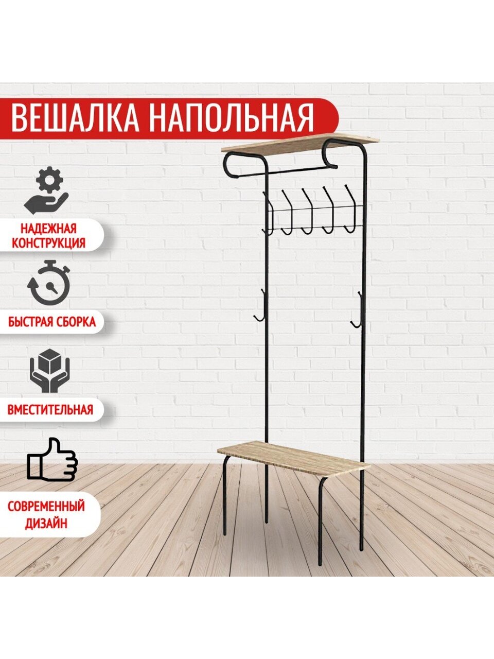 Вешалка в прихожую Sheffilton 75х30х188.5 см — оптимальное решение для хранения верхней одежды: 7 крючков, прочный металл, стильный черный цвет.