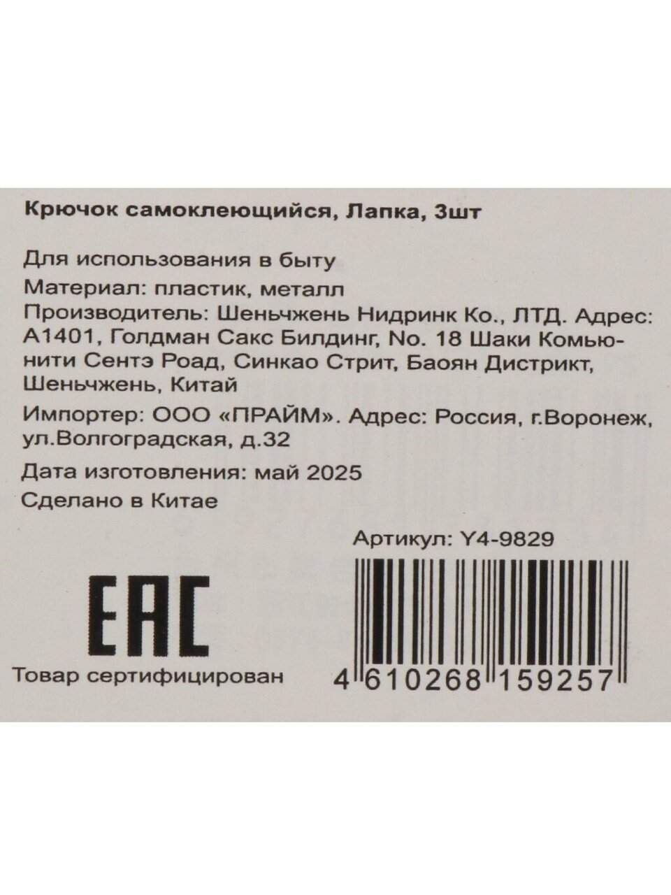 Вы можете приобрести «Крючок самоклеящийся, 3 шт, пластик, Лапка, Y4-9829» и другие товары в нашем интернет-магазине в Ярославле по низким ценам и с бесплатным самовывозом.