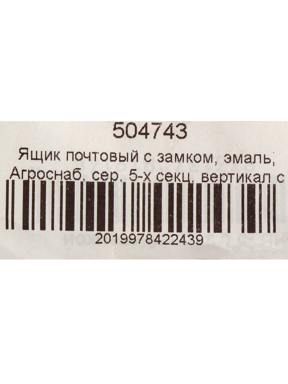 Вы можете приобрести «Ящик почтовый с замком, эмалированный, Агроснаб, серый, 5-ти секционный, вертикальный с задней стенкой» и другие товары в нашем интернет-магазине в Курске по низким ценам и с бесплатным самовывозом.