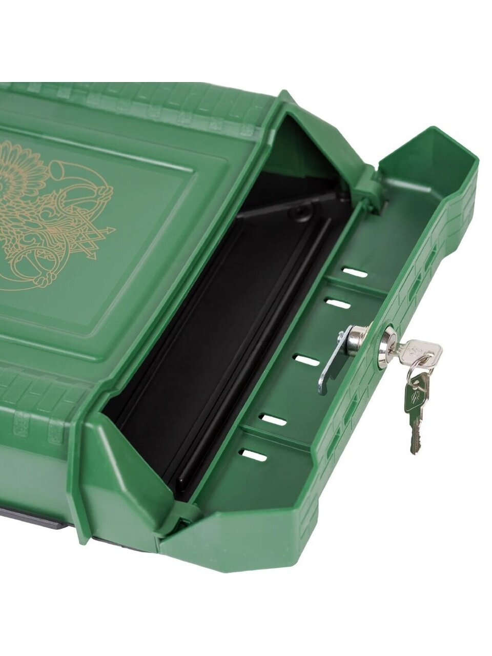 Дизайн почтового ящика - украшение любого дачного или загородного дома. Ящик почтовый Премиум выполнен из морозостойкого пластика, цвет - яркий насыщенный с изображением орла. Пластиковый ящик навешивается на внешнюю сторону забора, корреспонденция опускается через верхнюю щель, прикрытую крышкой. В комплект входят замок и два ключа.
