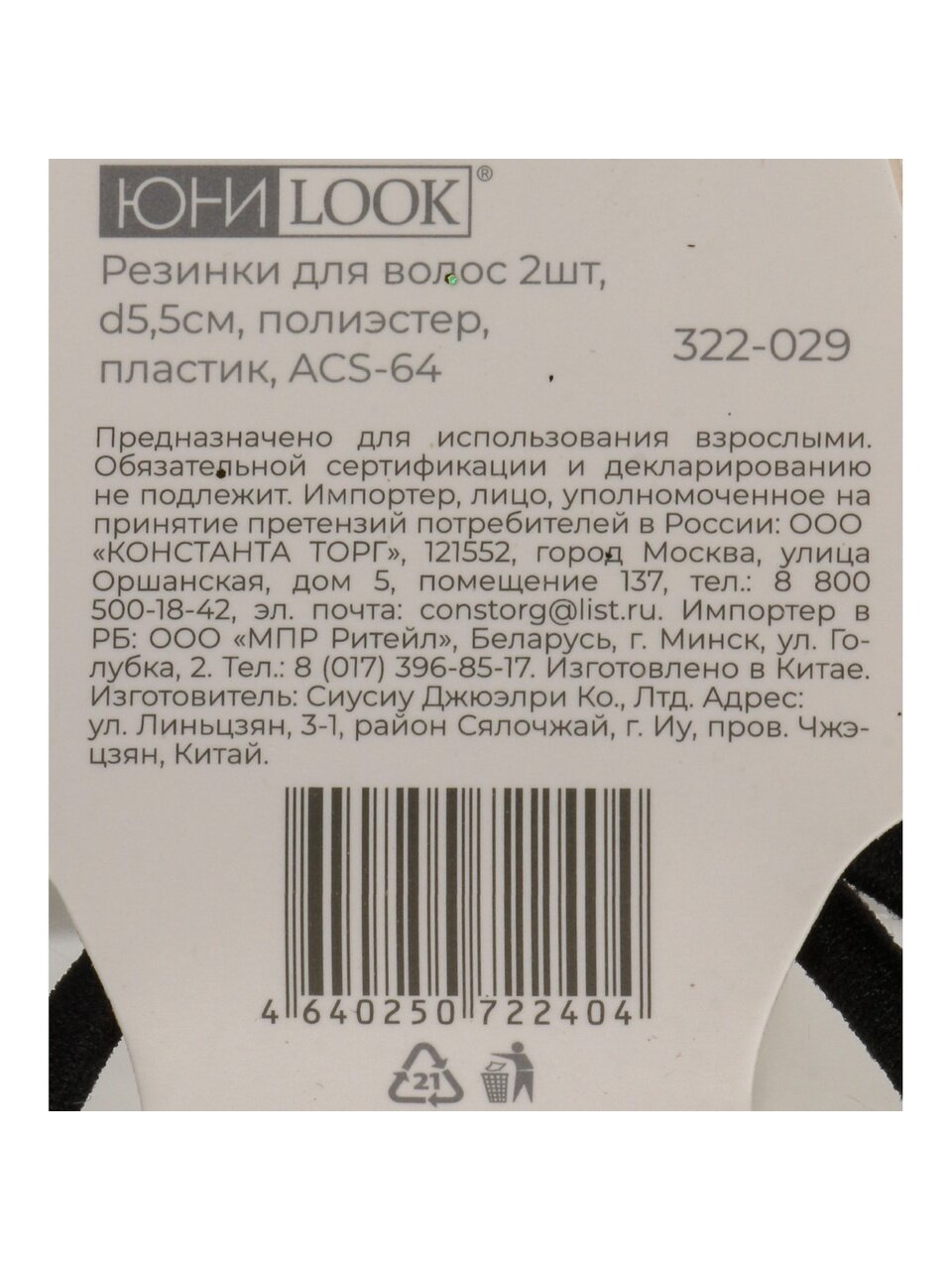 Резинки для волос ЮниLook — 2 стильных аксессуара d5.5 см с долговечным покрытием: надёжная фиксация, комфорт для волос, универсальный дизайн для любого образа.