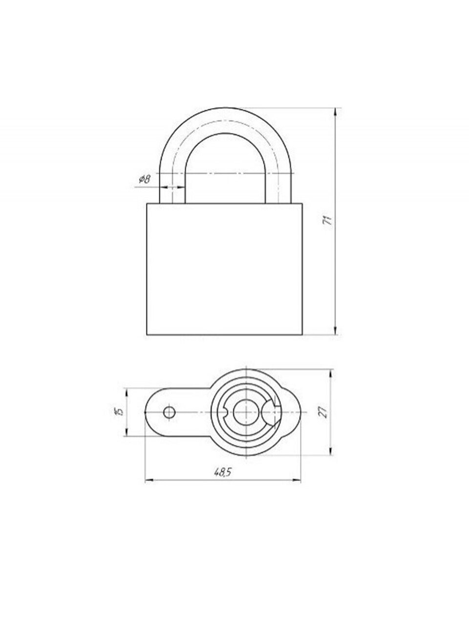 Материал дужки - сталь с антикороззийным покрытием. Диаметр дужки 8 мм.