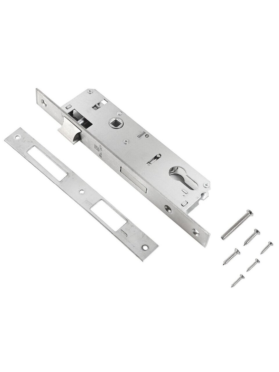 - Дверной замок укомплектован ответной планкой, которая прикроет прорези для ригеля и защелки замка.