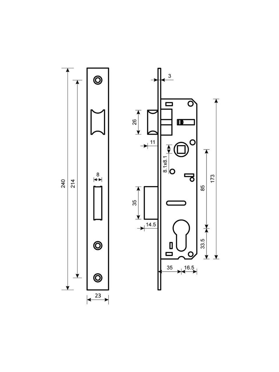 Врезной замок в дверь легко устанавливается, стандартное отверстие под квадрат 8х8 мм позволяет комплектовать дверной замок под цилиндр с любой раздельной ручкой на розетке.