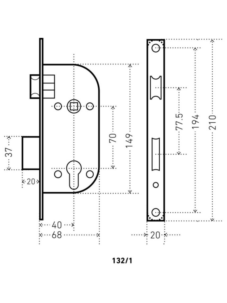 Замок врезной Аллюр, 132/1 GP, 1089, ручка в комплекте, цилиндровый, латунь