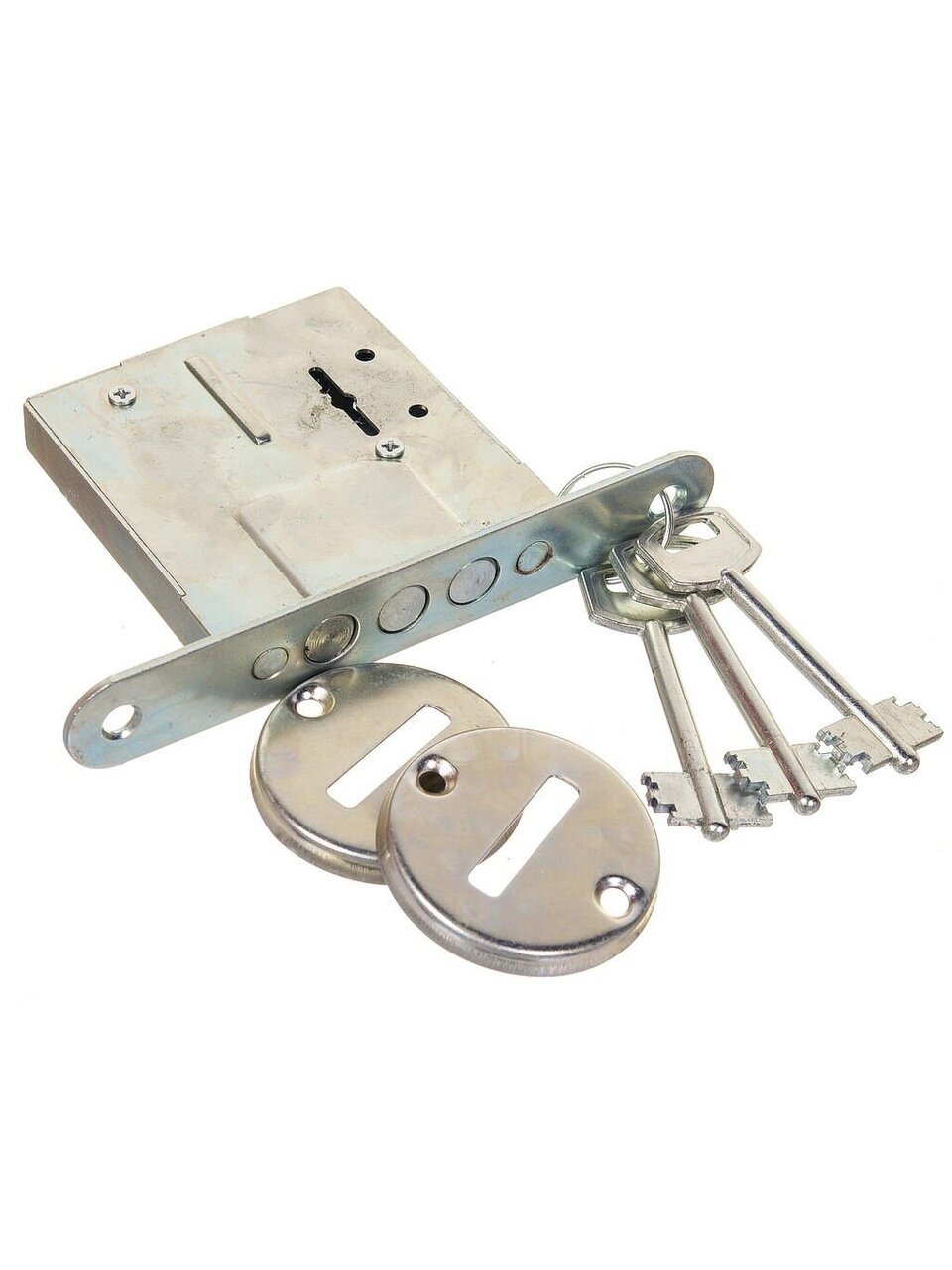 Врезной замок с сувальдным механизмом секрета и тремя стальными ригелями. Имеет популярные на рынке установочные размеры. Подходит для деревянных и металлических дверей.