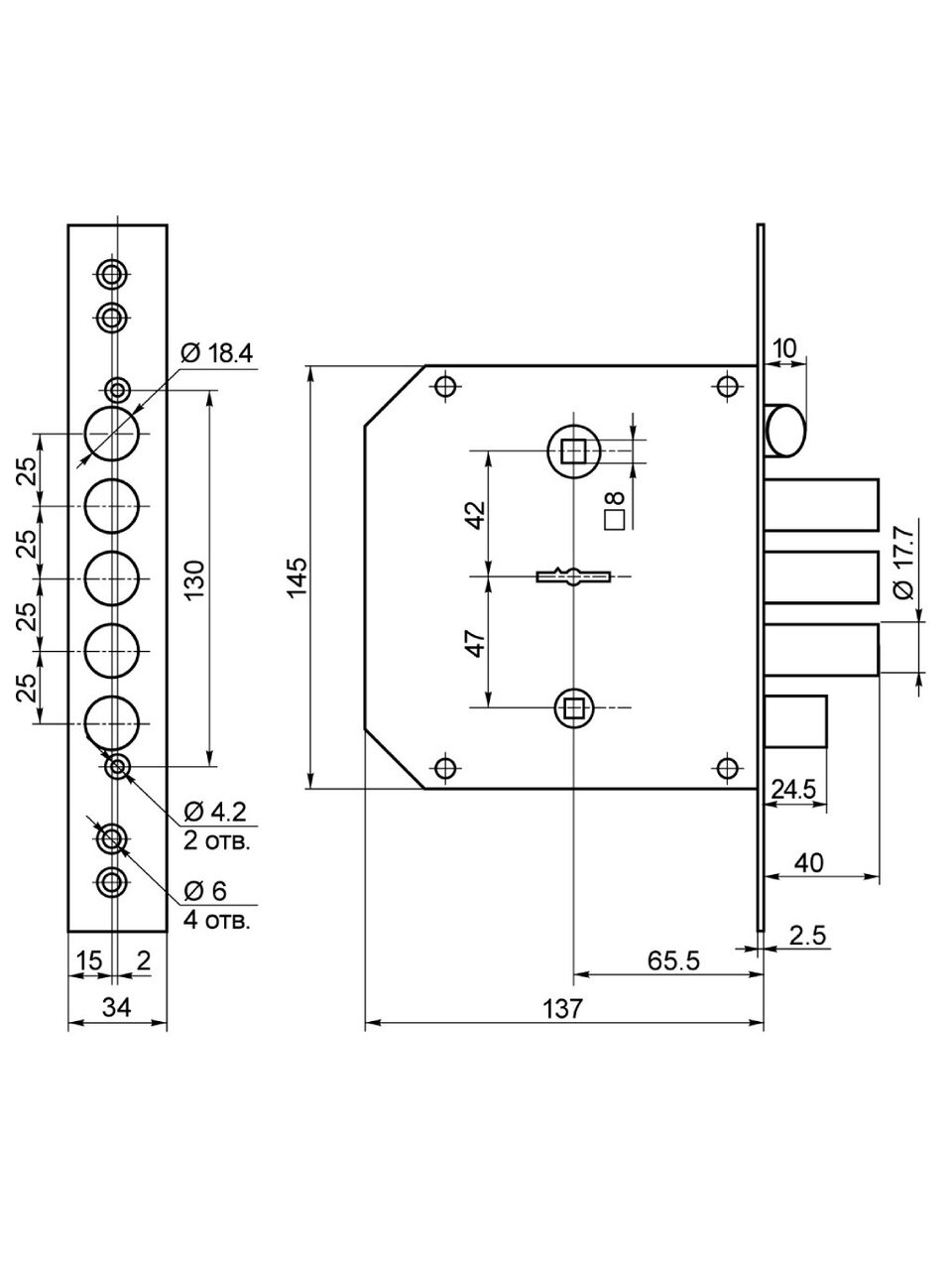 - Размер ригеля: 17,7 мм
