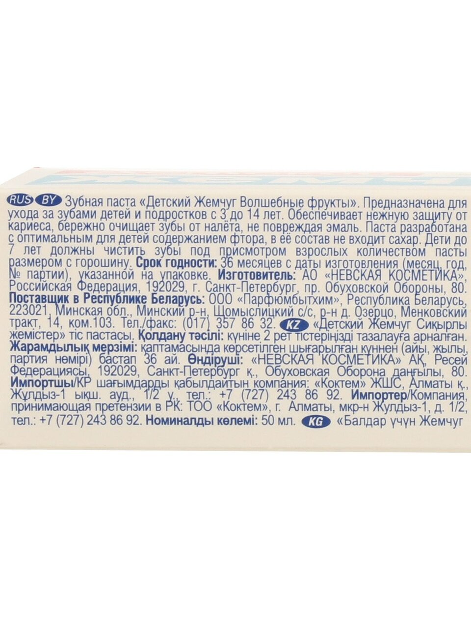 Вы можете приобрести «Зубная паста Детский Жемчуг, Волшебные фрукты, для детей, 50 мл» и другие товары в нашем интернет-магазине в Обнинске по низким ценам и с бесплатным самовывозом.