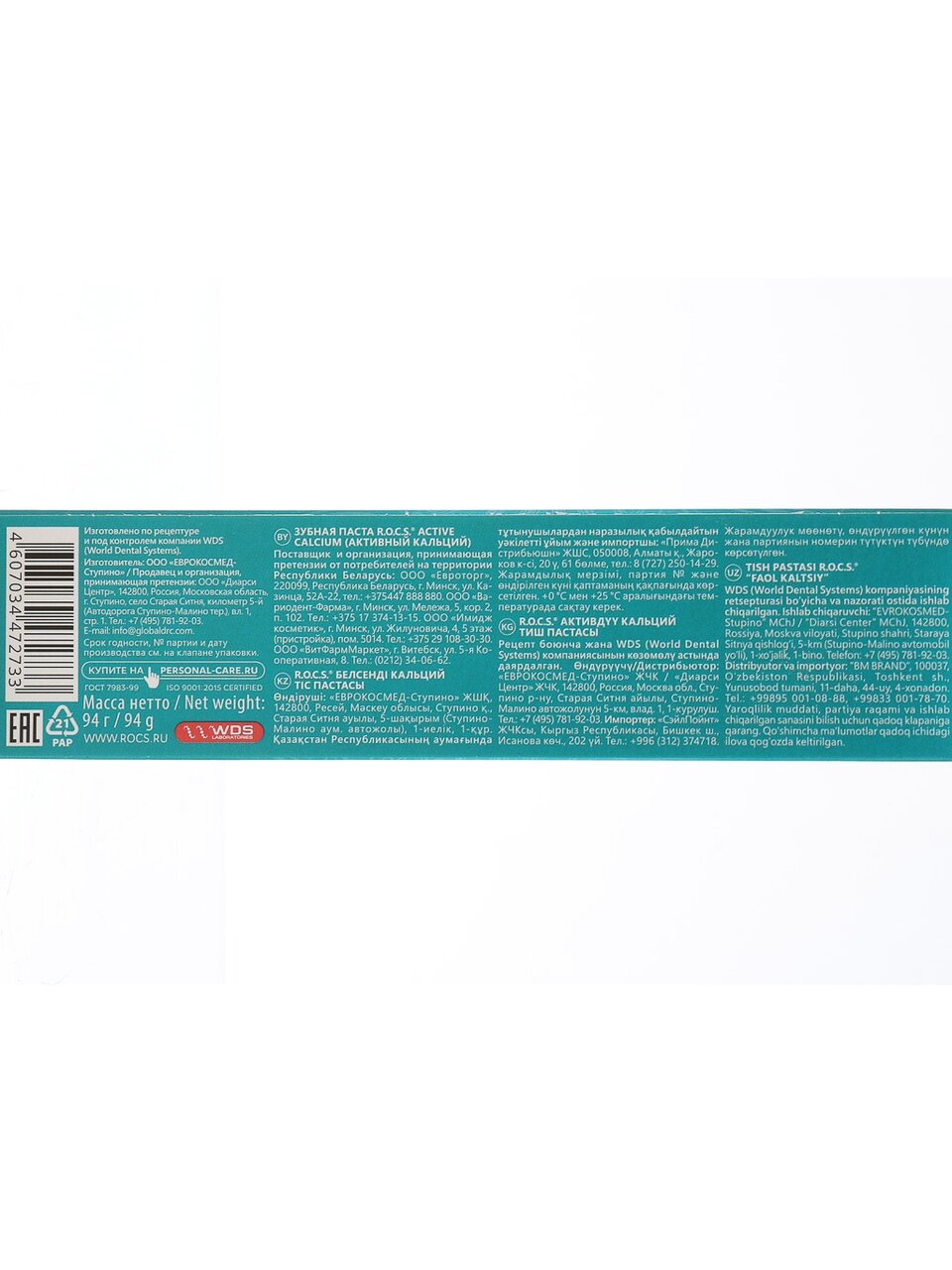 Тюбик объёмом 94 г, предназначен для взрослых, в составе — активный кальций для чувствительных зубов, страна продавца — Россия.