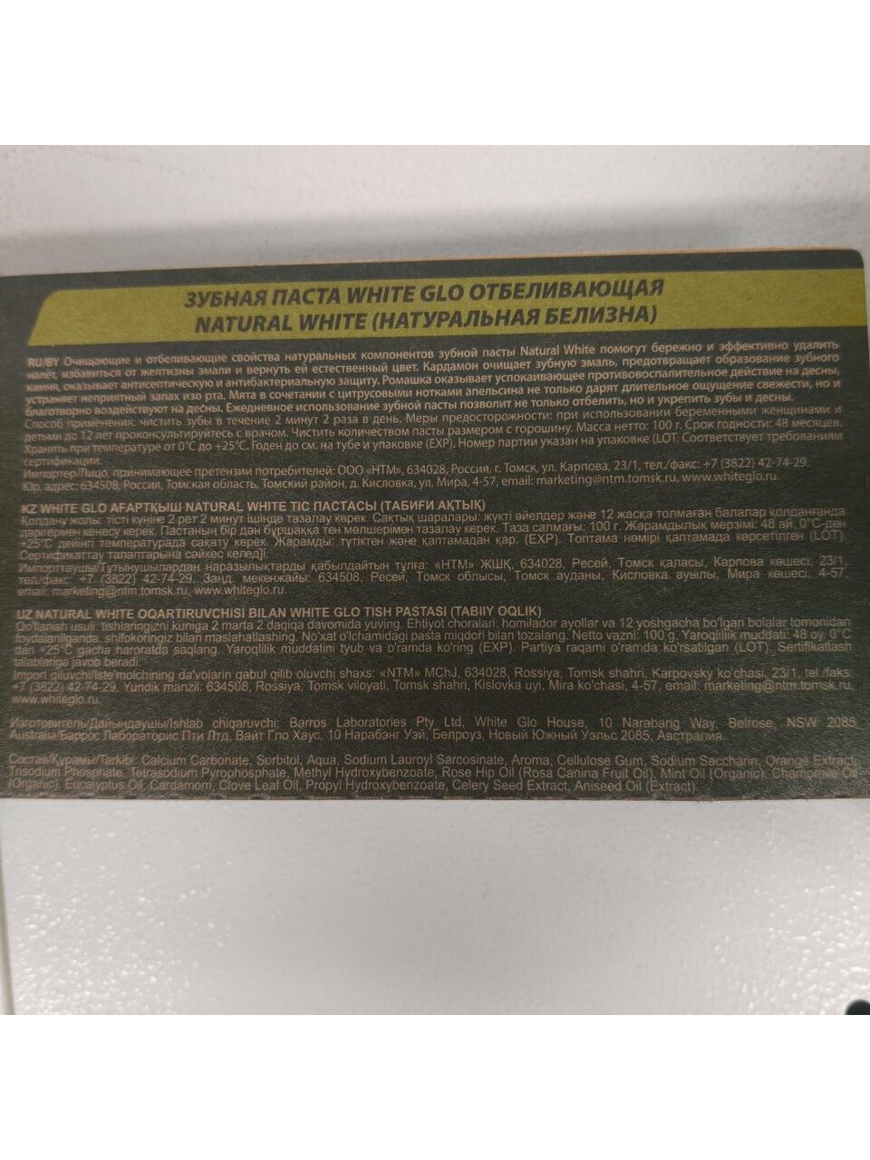 Состав: вода, ароматизатор, апельсина экстракт, сорбит, кардамон, натрия тетрапирофосфат, эвкалипта масло, мяты масло, аниса экстракт, аниса масло, кальция карбонат, ромашки цветка масло, натрия лаурилсаркозинат, гвоздичного дерева масло, натрия сахарин, шиповника масло, сельдерея семян экстракт, целлюлозная смола.Вы можете приобрести «Зубная паста White Glo, натуральная белизна, 100 г» и другие товары в нашем интернет-магазине в Казани по низким ценам и с бесплатным самовывозом.